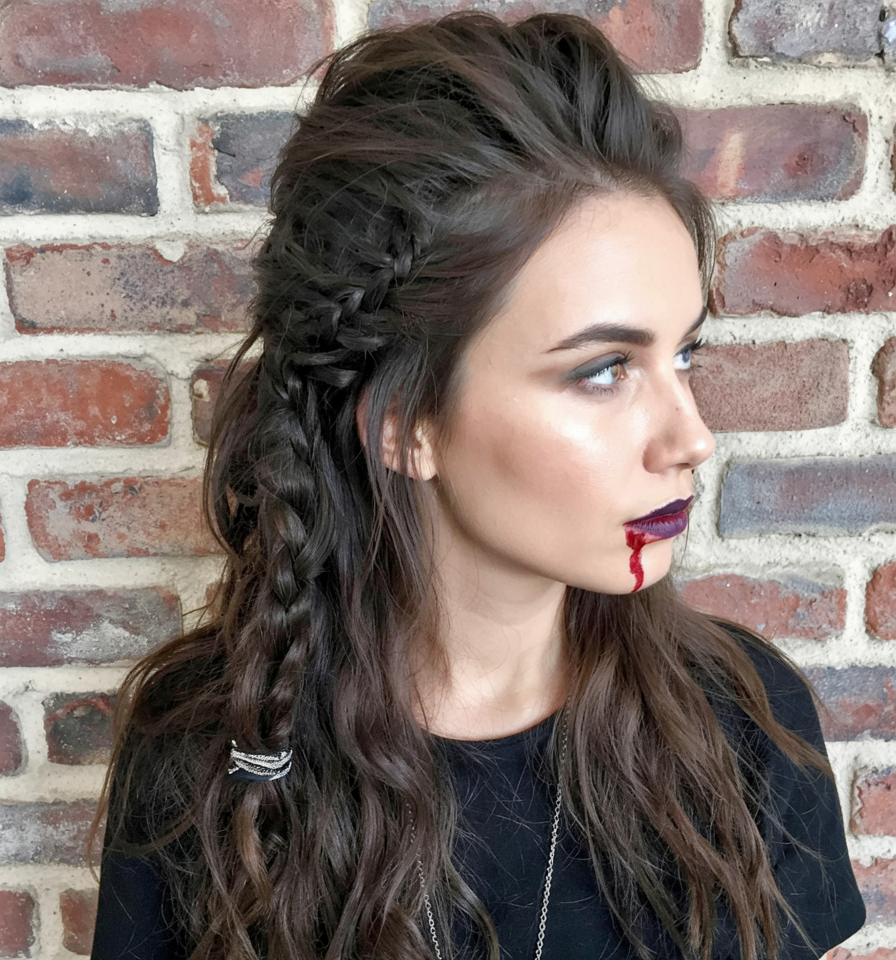 This one’s best for women with thick, long hair that holds shape. Use a volumizing mousse before braiding, and secure with gothic-style pins or mini claws for that touch of halloween glam. It pairs beautifully with lace dresses or velvet capes.