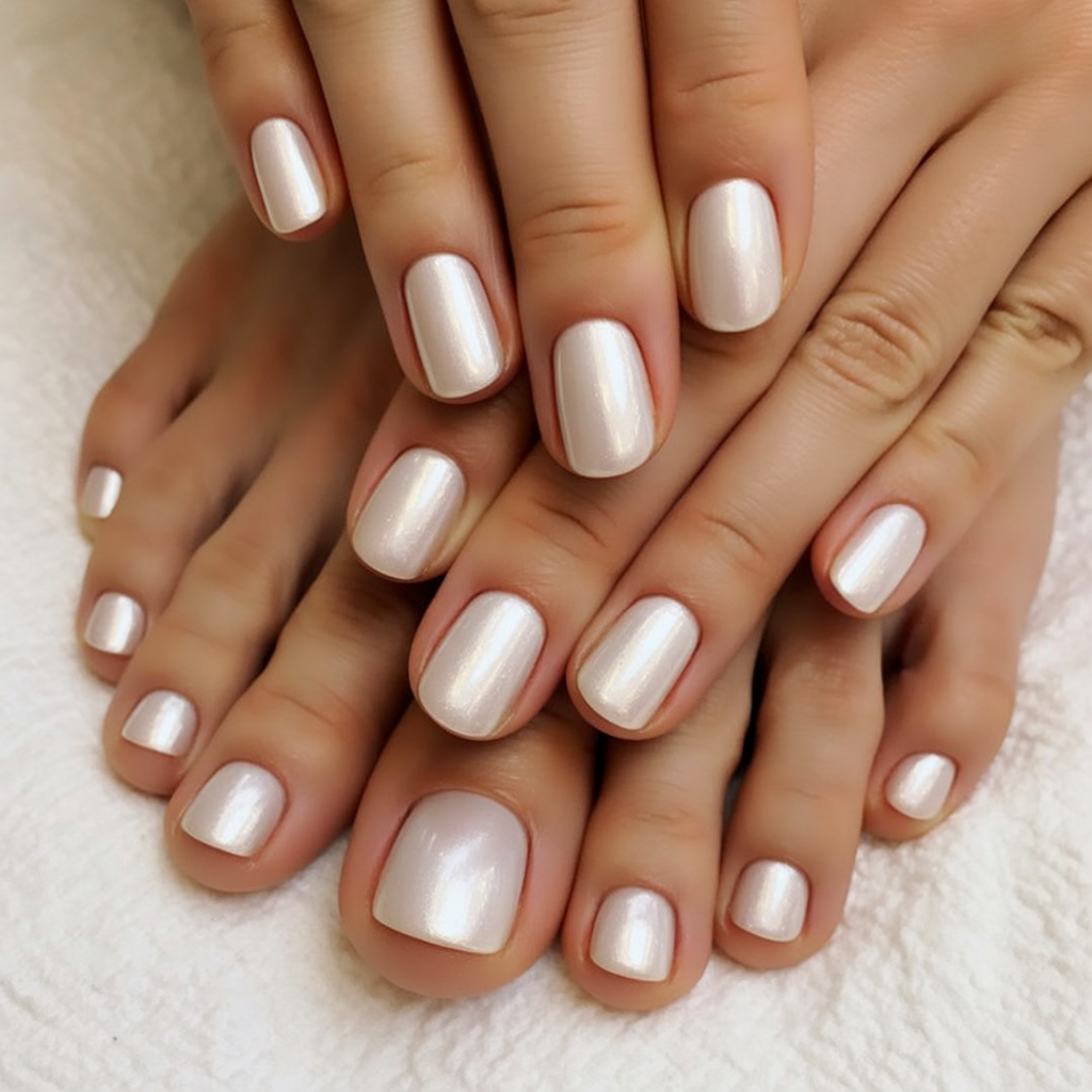 Matching hands and toes with a pearly white finish just hits different—it’s that “I have my life together” feeling, even if you absolutely don’t. The glow is soft and creamy, and it makes everything feel clean, groomed, and quietly luxurious. This is the kind of look that makes sandals feel like an accessory, not an afterthought.