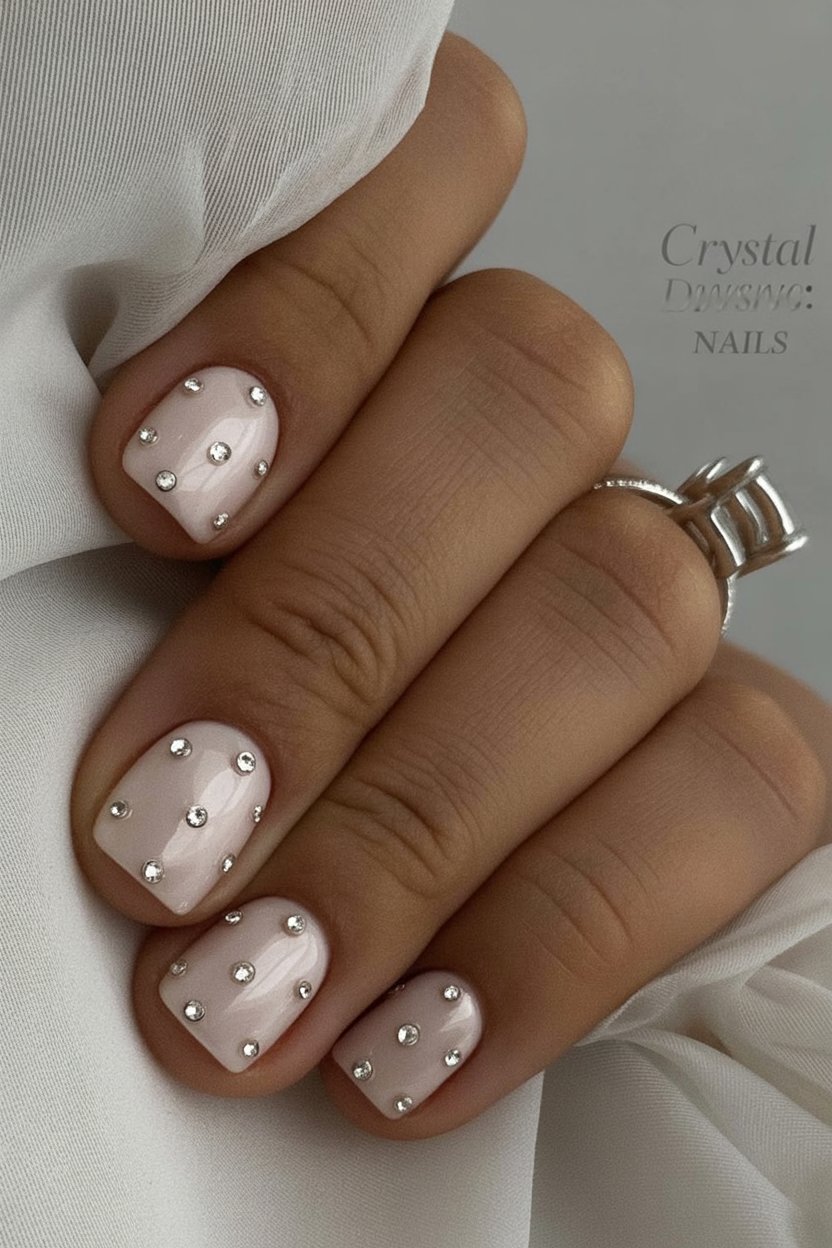 If you’re styling it, lean into the luxe-minimal vibe: creamy knits, a glossy nude lip, and simple gold hoops look insanely good with this. Short square keeps the whole look crisp and wearable, so you’re not babysitting length. Ask your tech to place tiny gems away from the very edge so they don’t catch on hair or sweaters, and seal everything with a smooth top coat for comfort and longevity.