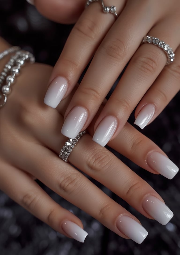The vibe here is calm confidence—soft, neat, and always appropriate. It’s a great pick for work, travel, or anyone who wants a low-drama look that still feels elevated. Ask for a milky base so the white stays flattering, then add a light chrome veil if you want that “lit from within” effect. Bonus: because it isn’t super stark, chips and grow-out are less obvious than with bright opaque white.