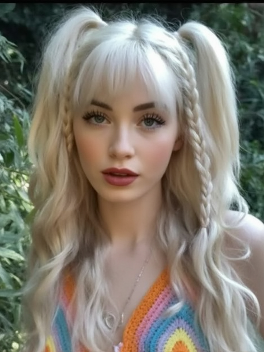 What makes it special: pigtails often read youthful, but the structured bangs and controlled height shift it into modern territory. Great for short hair at the shoulder or longer lengths. If you’ve got straight hair, add soft bends for bounce; if you’ve got wavy or curly hair, enhance the natural pattern. The accent braids act like built-in accessories—no extra Clips required.