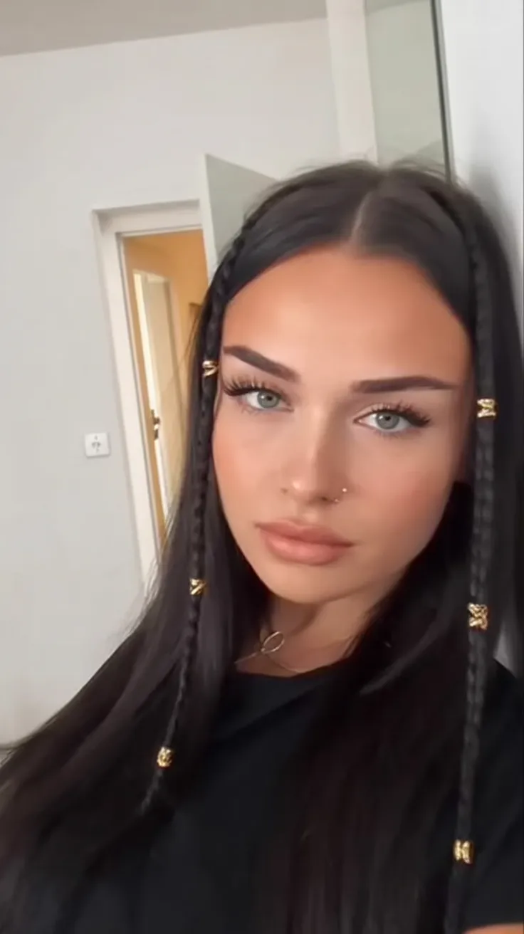 This one has that quiet baddie energy that sneaks up on you. At first glance it looks simple, but then you notice the ultra-sleek center part, the tiny front braids, and the little metallic accents that make the whole look feel styled in a very intentional way. It’s minimal, but not boring. In fact, that’s exactly why it feels so chic. The long, straight lengths create a strong silhouette, while the delicate braids soften the look just enough. It gives off Clean, controlled confidence with just a little edge. If you love hairstyles that feel polished but still trendy, this is the kind of look that slips easily into your regular rotation and makes even a basic outfit feel more elevated.