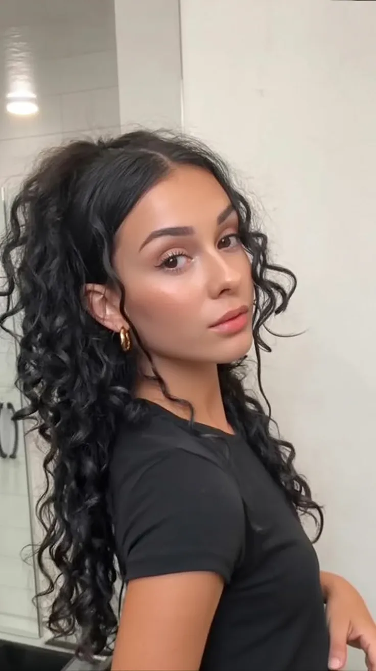 This is a lovely option for curly hair, latina curly textures, or anyone with naturally textured strands who wants a style that lets the curls be the star. A curl cream and diffuser can help boost definition, while the ponytail itself is best secured high for that lifted effect. For women who want Ideas for curly hair that feel both practical and pretty, this one is such a winner. It’s especially great when you want to feel a little more polished without hiding your natural texture.