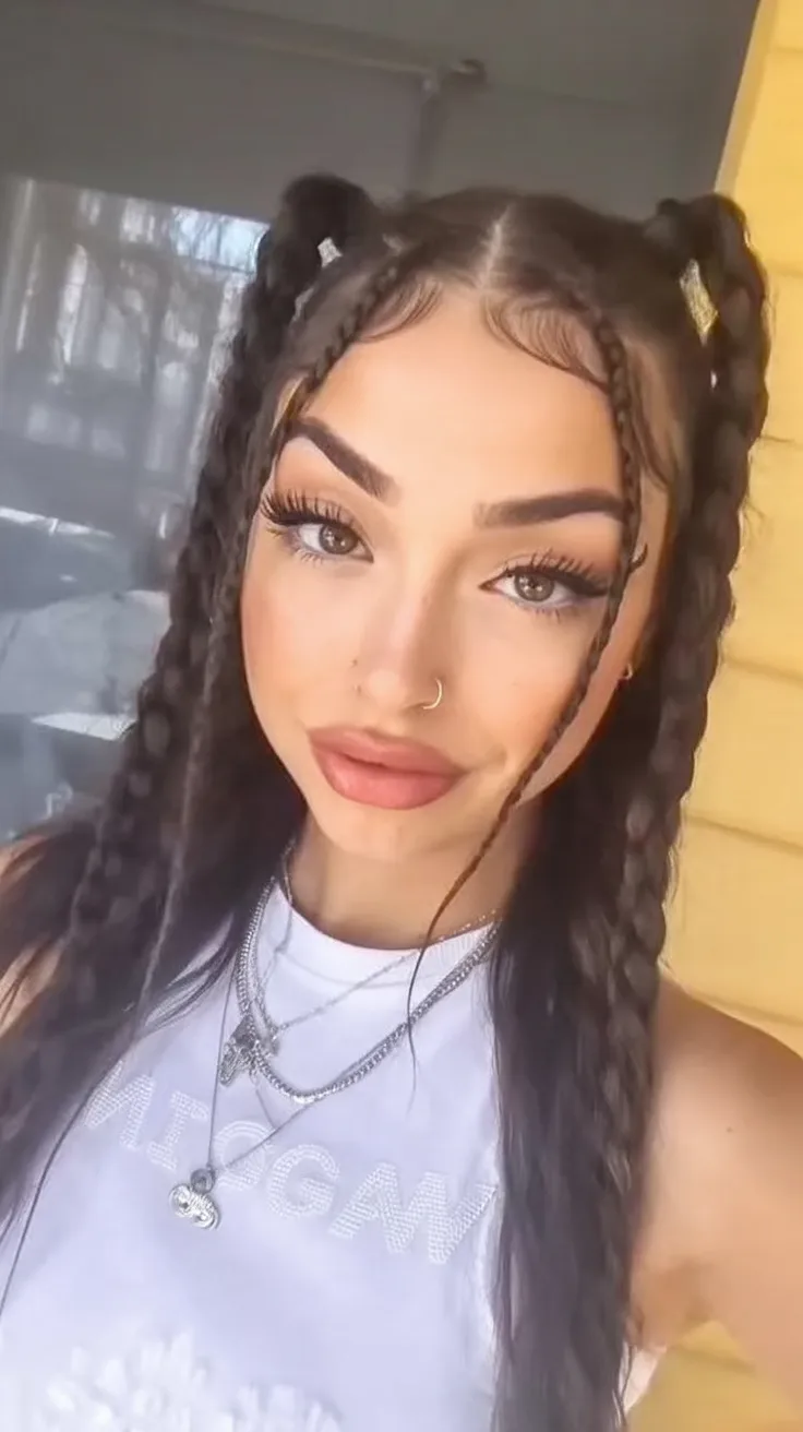 This style has that unmistakable baddie attitude right away. The braided pigtails, snatched baby hairs, and loose front strand create a look that feels fierce, playful, and just a little daring. It’s giving confidence, selfies, and that tiny bit of extra drama that makes a hairstyle unforgettable. The symmetry of the braids keeps it strong, while the soft piece left out in front adds movement and keeps the whole thing from looking too stiff. It’s a style with personality, and honestly, that’s what makes it so good. For black women, latina girls, or anyone who loves expressive beauty looks, this hairstyle feels bold in the best possible way.