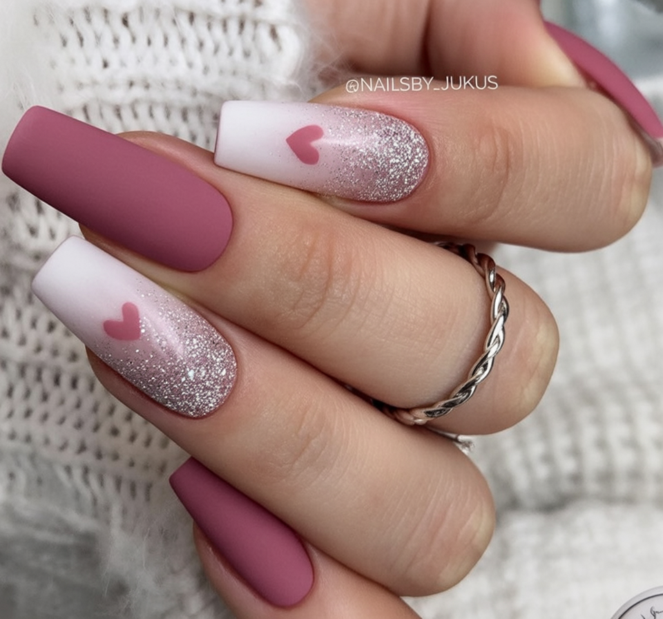 These nails are as though a glittery valentine card around your fingers. The gentle ombre effect of white to pink, sprinkled with silver glitter and with its dainty heaps of heart accent, puts each step a touch more romantic. It is the ideal combination of refined and sweetness.