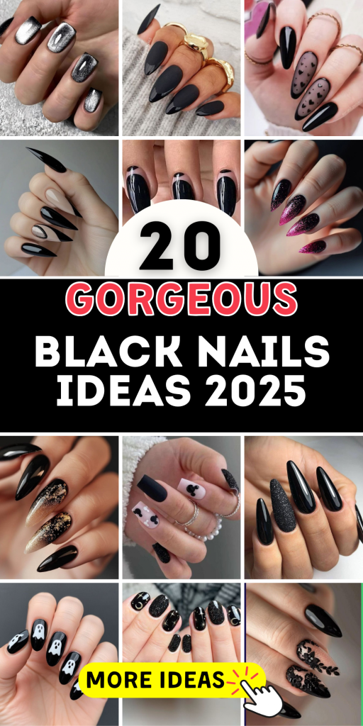From glittering stiletto nails to cute Halloween designs, these black nail ideas for 2025 capture versatility and creativity. Whether you prefer short or long, simple or ornate, there’s a style here to inspire your next manicure. Which design is your favorite? Let us know in the comments!