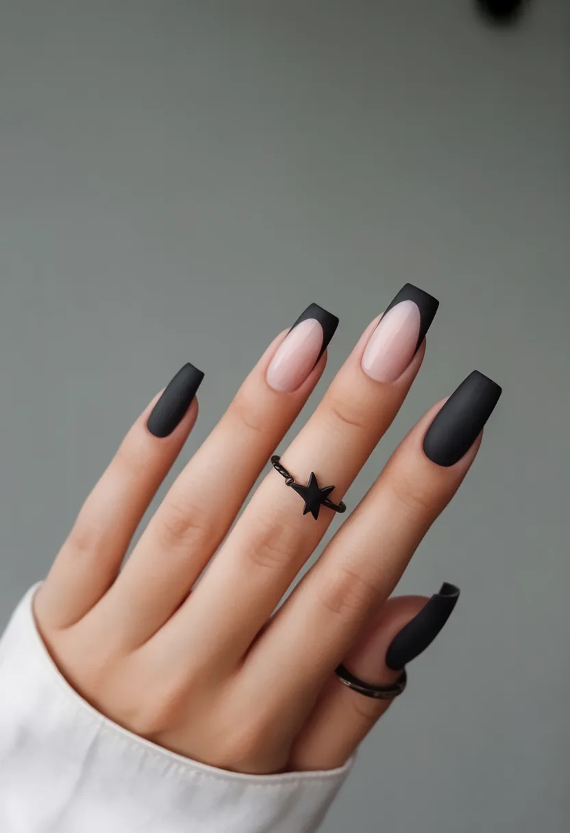 1. Matte Almond Black with Delicate Floral Art