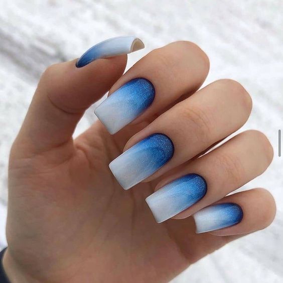 Why not try something different with a Squoval shape? It’s a unique blend of square and oval, and when done in blue, it’s absolutely stunning.