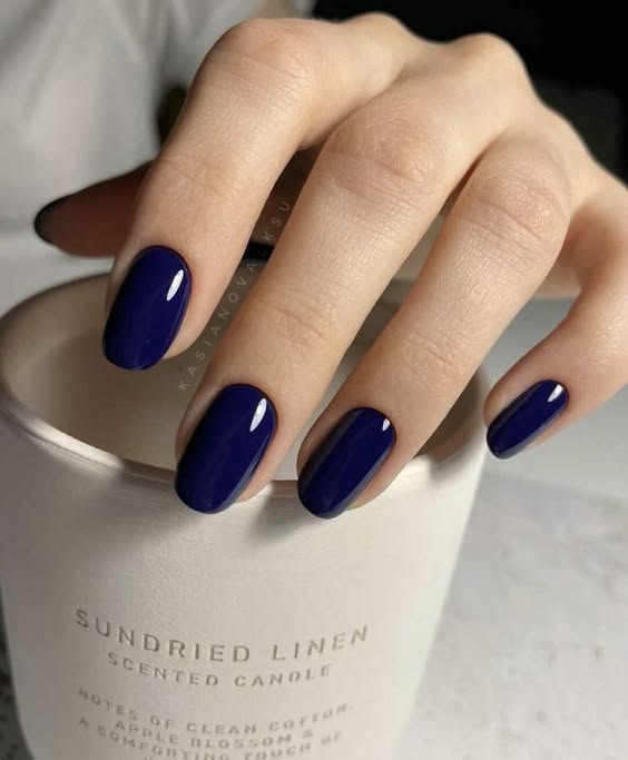 This classic navy blue manicure offers a sleek, glossy finish for an elegant and minimalist look. Suitable for any occasion, the rich deep hue provides a polished and timeless aesthetic that complements any style.