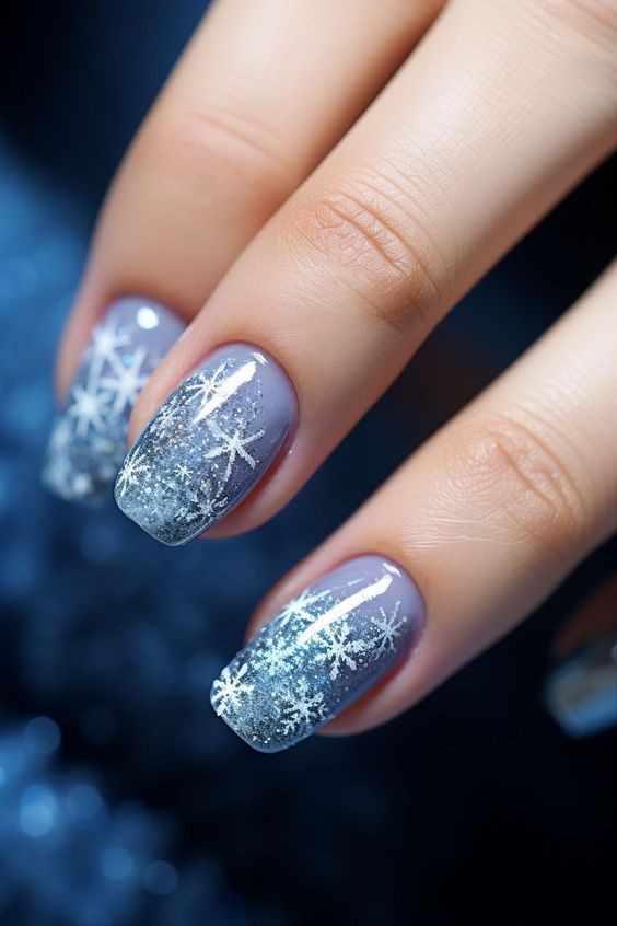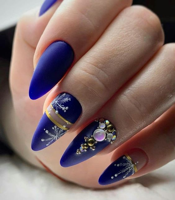 As the snow falls, why not let your nails reflect the season? Blue nails with snowflakes are a whimsical way to embrace the winter vibe. It’s a look that’s as unique as each snowflake – ideal for both the holiday season and beyond.