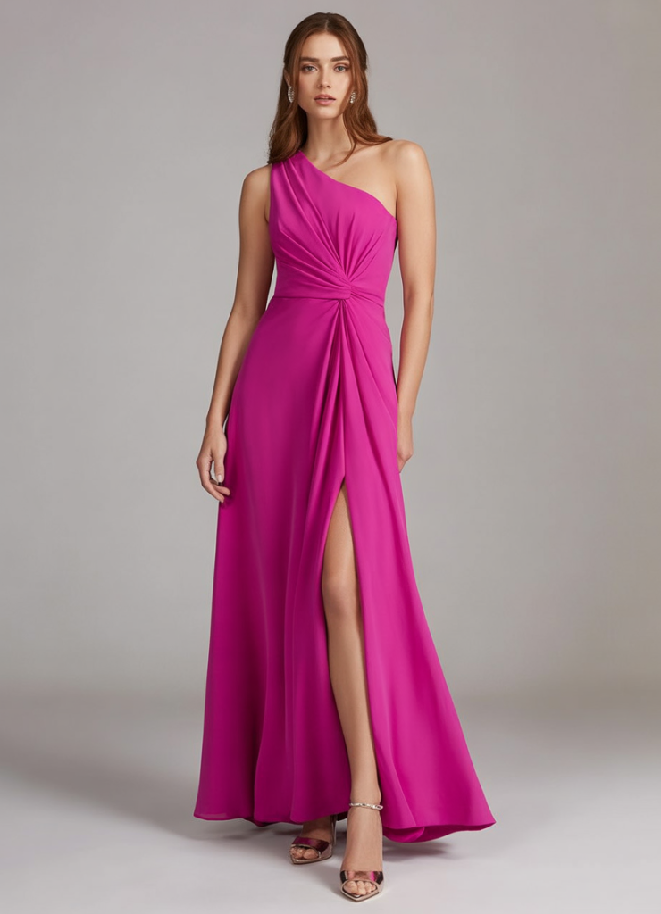 13. Bold Pink One-Shoulder Dress with Runway Drama