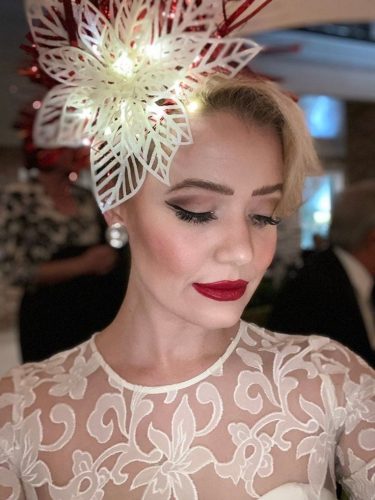 Create a sleek updo with smooth sections and secure the floral headpiece with pins. Add some shimmering hairspray for a festive glow. This look pairs beautifully with bold makeup and is perfect for any formal Christmas event.