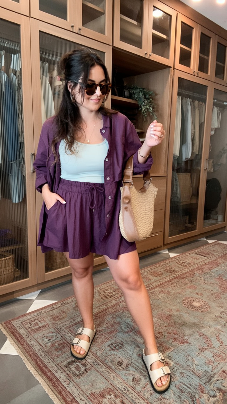 There’s something instantly cozy about this look, like slipping into your favorite routine. The matching shorts and lightweight layer feel relaxed but still intentional, creating an outfit that’s perfect for slow mornings and casual afternoons.