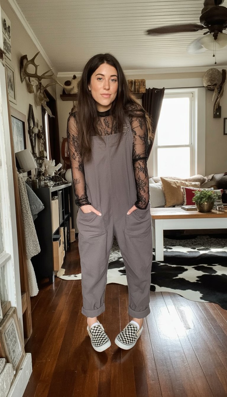 This outfit feels creative and cozy, like a slow Saturday spent doing things you love. Overalls bring a nostalgic touch, while soft layers keep the look grounded and wearable. It’s relaxed, artsy, and full of personality.