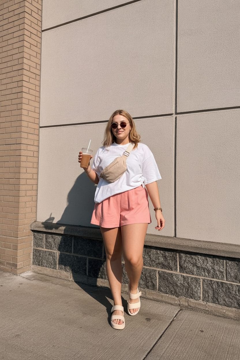 This outfit feels timeless in the best way. A crisp white tee and soft shorts create a look that’s fresh, approachable, and endlessly wearable. It’s the kind of outfit that always feels right, no matter the day.