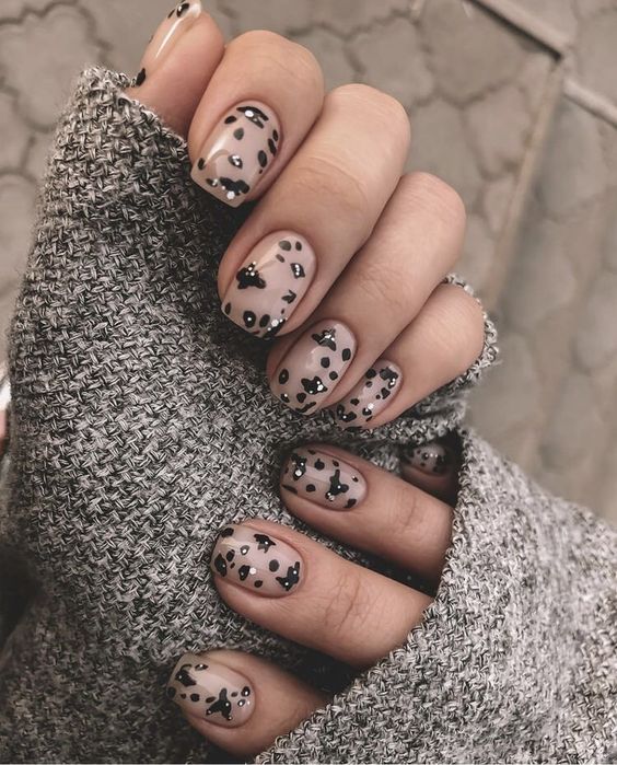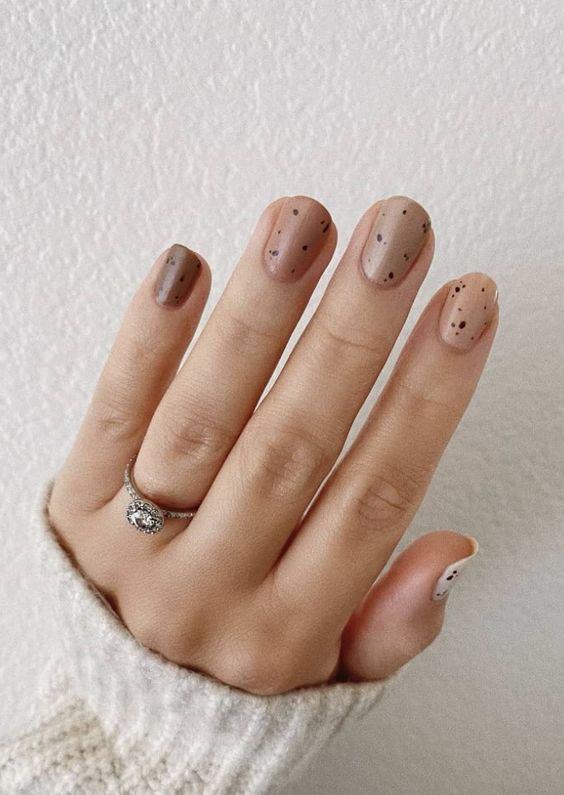 For those who prefer minimalism, this speckled design is a great choice. The nude base with tiny black specks is simple yet stylish, making it an excellent option for a subtle fall look. This design is easy to achieve and works well for any occasion.