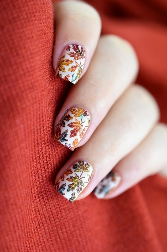 Capture the essence of fall with a design inspired by autumn leaves. The intricate leaf patterns in various fall colors make this design a true standout. This simple yet eye-catching nail art is perfect for embracing the beauty of the season.