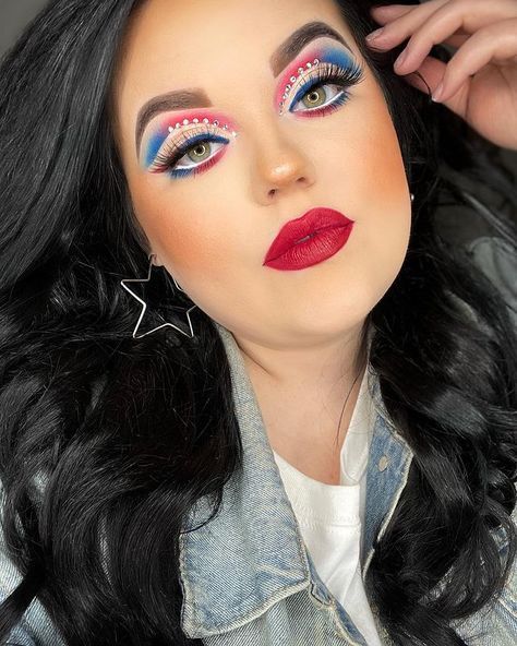Envision a gaze that carries the essence of the American flag. This look features eyelids draped in the iconic red, white, and blue, with stripes and stars that mirror the flag’s design. The skillful blend of eyeshadow and detailed eye liner work culminates in a look that’s both fun and edgy. Complement this with a glossy red lipstick to make a statement at any 4th of July event.
