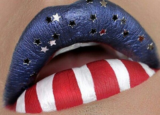 Focusing on the lips, this idea combines the art of the American flag with the seduction of a bold lip. Stripes of red and white paired with blue and white stars create a simple yet captivating look. It’s an easy way to partake in the patriotic theme without full-face makeup.