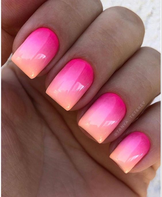 The transition from a warm yellow to a hot pink on these square-shaped nails captures the essence of a summer sunset. The ombré effect is a trend that continues to dominate, representing the perfect summer nails for those who love to merge classic styles with a modern twist.