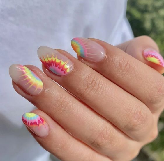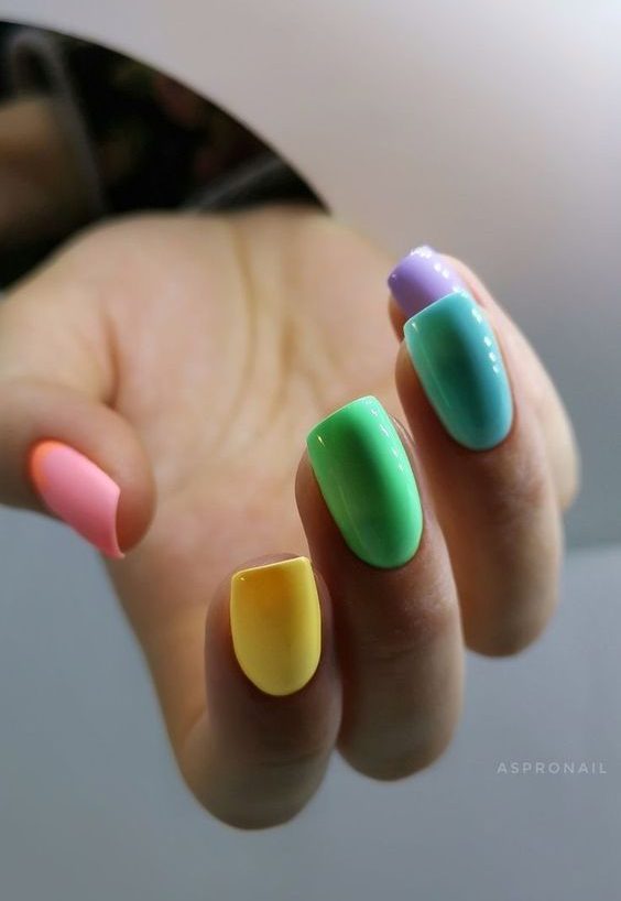 Why settle for one when you can have a spectrum? These nails celebrate the joy of color with a selection of pastel shades, each nail a different hue to create a playful and perfect summer nails almond array.
