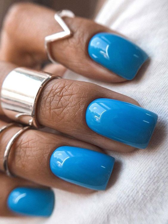 Blue is the quintessence of summer – reminiscent of clear skies and ocean depths. A glossy, vibrant blue on a medium length provides a fresh and cool look, ideal for those long summer days.
