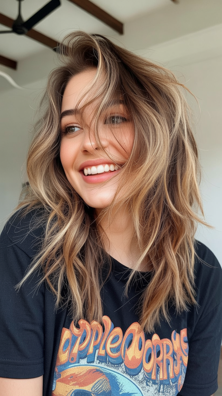 The overall vibe is relaxed and a little bit artsy, perfect if you prefer styles that aren’t too polished. Ask for subtle highlights scattered through the mids and ends so the color looks sunlit rather than obviously dyed. Use a lightweight mousse or foam on damp hair, scrunch, and let it air-dry to encourage that natural movement. On second-day hair, revive things with a spritz of dry shampoo at the root and a bit of texturizing spray through the lengths to bring back the lift and separation.
