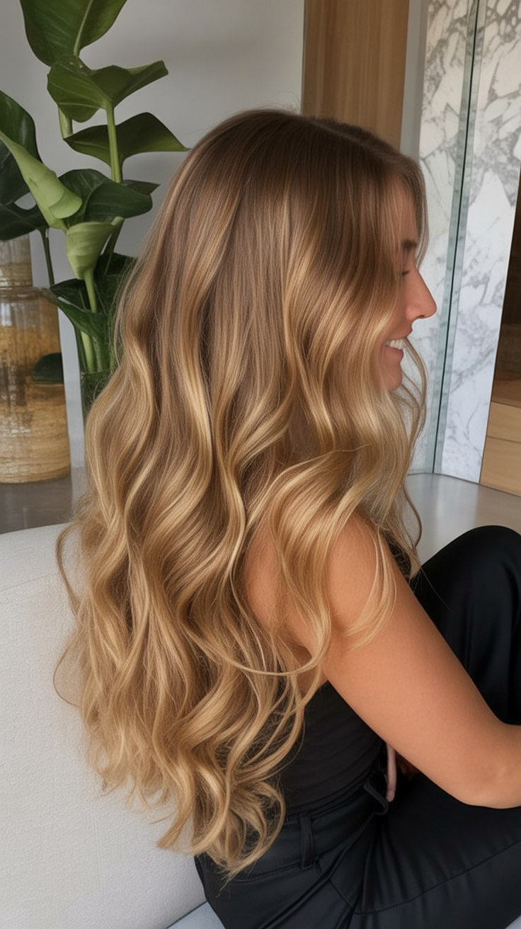 There’s something effortlessly glamorous about this kind of dirty blonde that looks like you’ve just come back from a long beach vacation, even if you’ve only been running errands. The long length gives those loose waves room to flow, and the blonde highlights are blended so smoothly that they feel completely natural, not “just left the salon” obvious. It’s the kind of hair that makes a simple tank top and jeans feel like a full outfit, and the soft dimension around the face subtly brightens your features without screaming for attention.