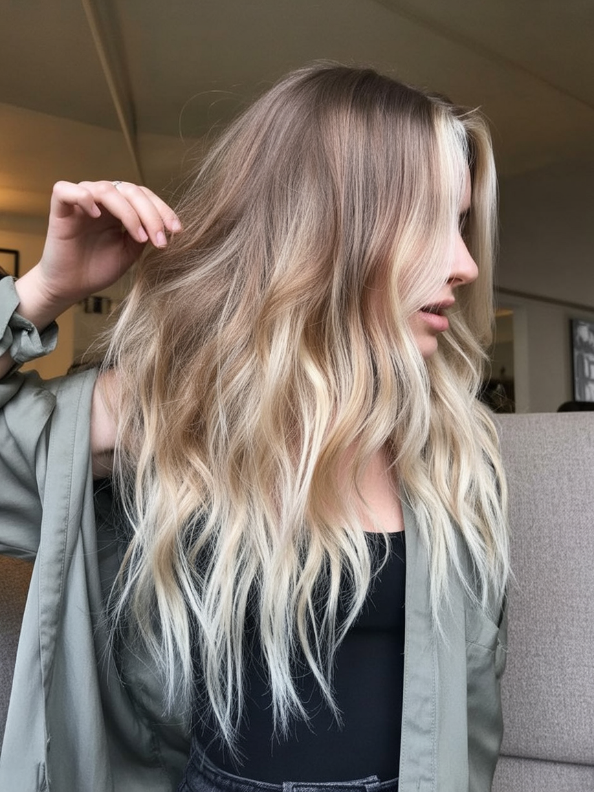 To keep this look effortless, focus on simple styling rather than perfection. Let your hair air-dry until it’s slightly damp, then twist sections into loose braids or buns to encourage waves. A salt or texture spray will amp up the movement without weighing it down. At the salon, ask for partial highlights around the face and crown, with the brightness concentrated through the mid-lengths and ends. A clear gloss or gentle toner every few months will keep your color reflective and fresh without a lot of extra upkeep.