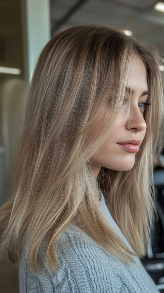 If you’ve been craving a change without going dramatically lighter, this is a beautiful emotional reset. Ask your colorist for ash tones with subtle highlights through the mid-lengths and ends, keeping the base soft and muted rather than dark or overly warm. A toner at the salon will help you hit that ashy sweet spot, and following a regular toning shampoo routine at home will keep brass at bay so your dirty blonde stays cool, calm, and flattering week after week.