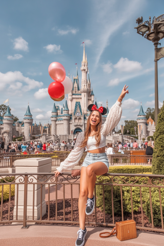 If you love outfits that give you an energy lift, this one does exactly that. Its vibe is cheerful and spirited, fitting especially well for October or early November visits when the weather still leans warm. The attitude this look gives off is pure optimism—like you’re ready to take on rides, snacks, and every castle photo op with a big smile.