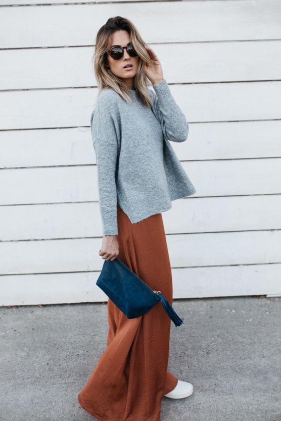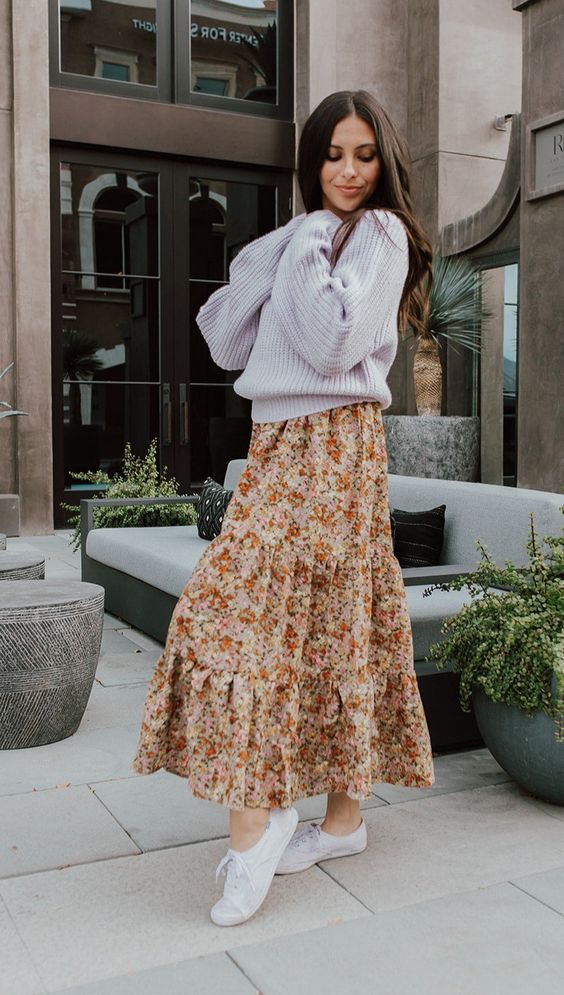 For the free-spirited souls, a flowing maxi skirt with a textured sweater is a bohemian dream. This look is all about movement and ease, perfect for spring days when the air is sweet with the promise of summer.