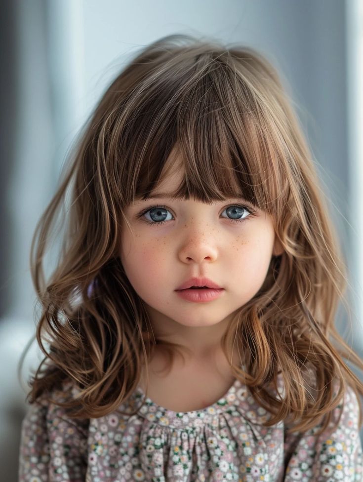 This layered bob with soft bangs frames the face beautifully, making it an ideal choice for toddlers with short hair or thin hair. The gentle layers add volume and movement, while the bangs offer a chic touch.