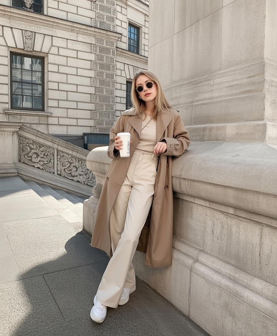 What makes this different from other spring looks is its ease. It’s not afraid to slouch into classic fashion trends but doesn’t take it too far, which is ideal for women who appreciate clean lines and understated self-assurance. Add a pair of comfortable walking shoes, and you’re good to go for an entire day of exploration.