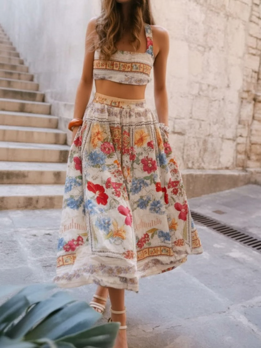 This outfit is sultry, and you can just feel the textures by looking at it. Due to the breathable and flowy nature of this floral fabric, it brings softness and nostalgia, which is perfect for a slow strut on the city’s historic streets. It’s romantic without being cloying, finding that balance so many of us seek as we grow more comfortable with our personal style.