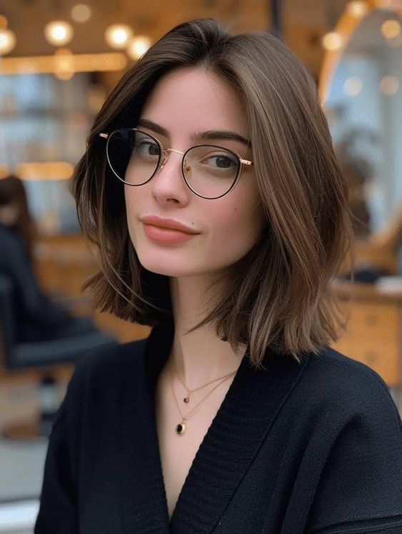 The classic bob paired with stylish glasses is a timeless look. This hairstyle features a blunt cut that falls just below the chin, creating a polished and professional appearance. It’s perfect for women over 40 who want a simple yet elegant style for the fall season.