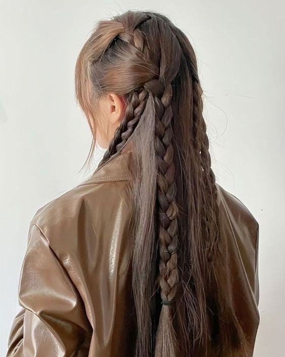Multiple braids with a twist add a playful and creative touch to your fall hairstyle. The braids are intricately styled, creating a unique and eye-catching look. This style is great for younger women or those who want to experiment with their hair.
