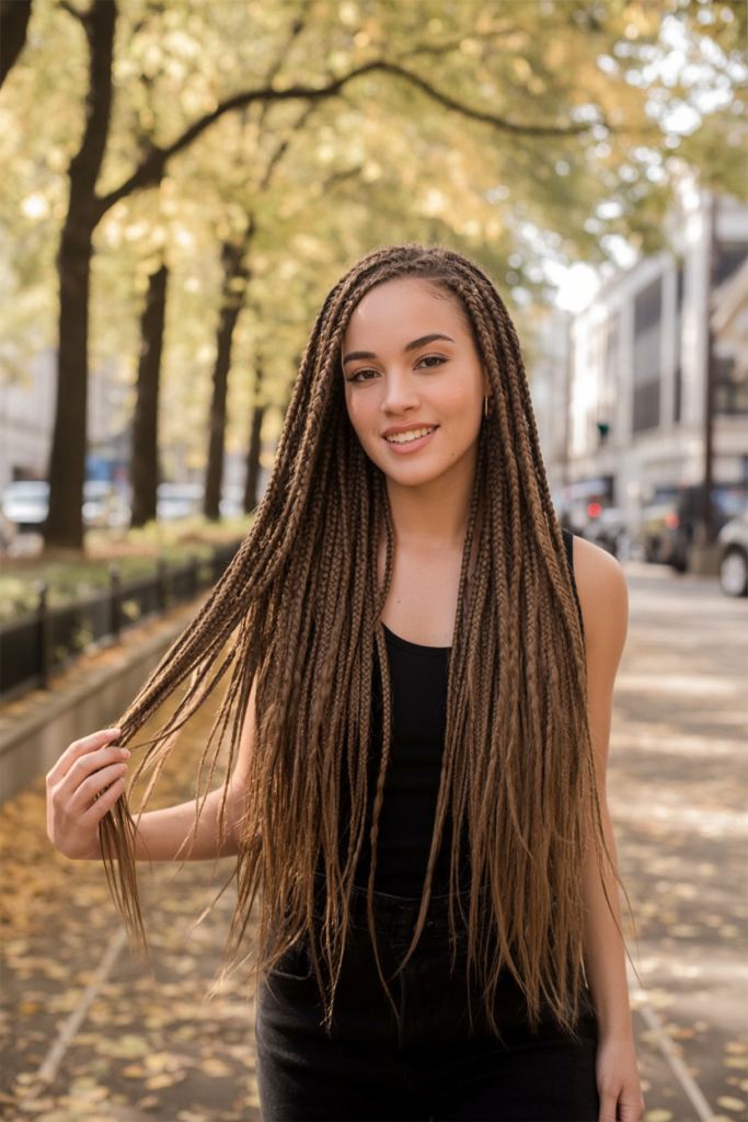 Perfect on any woman who would like the fluff of the box braids without all the thickness on the roots. This is very useful in case of finer hair or sensitive scalp. That is one of those concepts, which remains stunning on the first day and on the sixth week, with no fuss on the agenda.