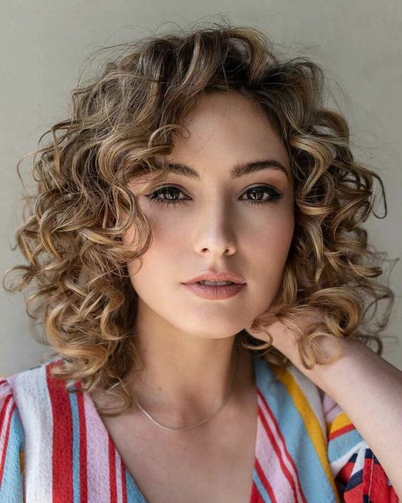 For a fun and playful look, these curly caramel highlights are an excellent choice. The caramel tones add brightness and dimension to the curls, creating a lively and dynamic appearance. The short, curly cut adds volume and texture, making this style perfect for those who love a bouncy and energetic look.