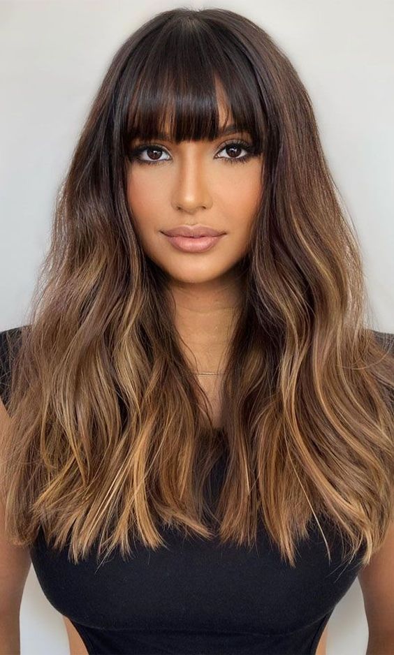 This style features deep chocolate waves that exude elegance and sophistication. The dark brown tones add richness and shine to the hair, creating a sleek and polished look. The long, wavy layers add volume and texture, making this style versatile and timeless. It’s a perfect choice for women who prefer a classic look with a modern twist.