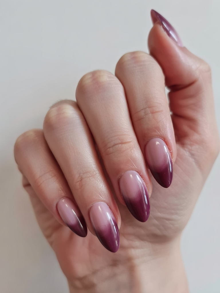 This deep plum ombre is something you can get seriously comfortable in Ana soul mate cardigan Gradation of soft blush to rich burgundy is sensual and well-rounded, which means this make-up style suits people who adore elegance and a bit of glamour.