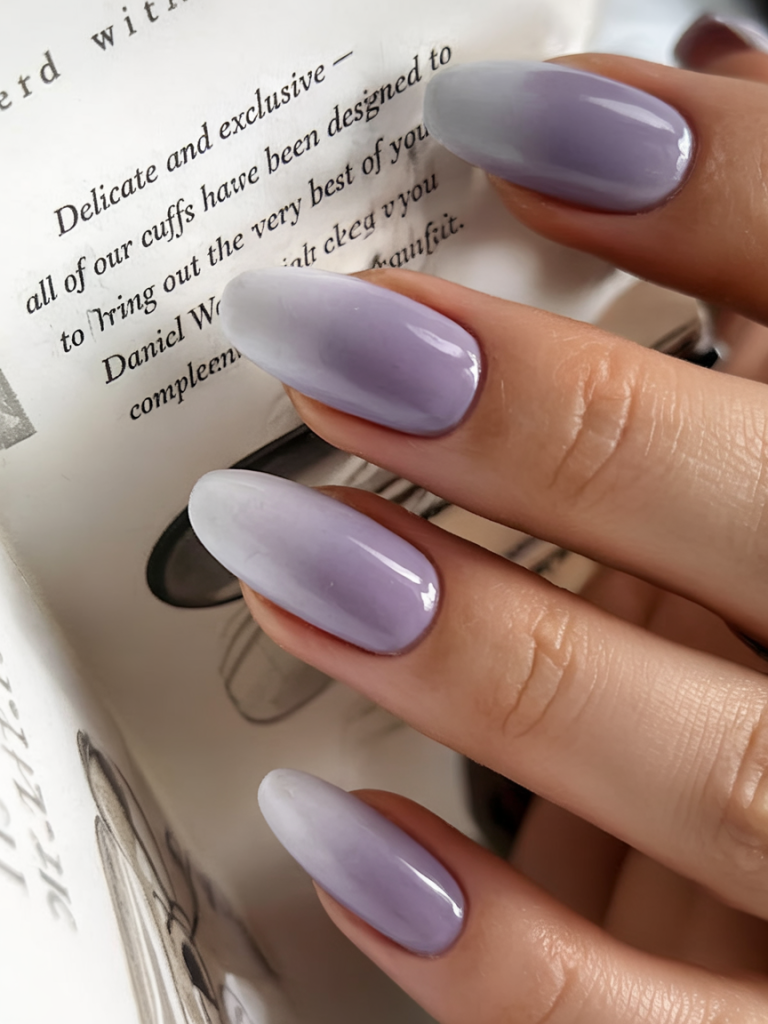 This is such a calm, fresh, and a touch mystical pale purple ombre. Like a crisp morning fog over a lavender field. It is such a color where you tend to slow down, have a chai latte and watch the leaves fall.