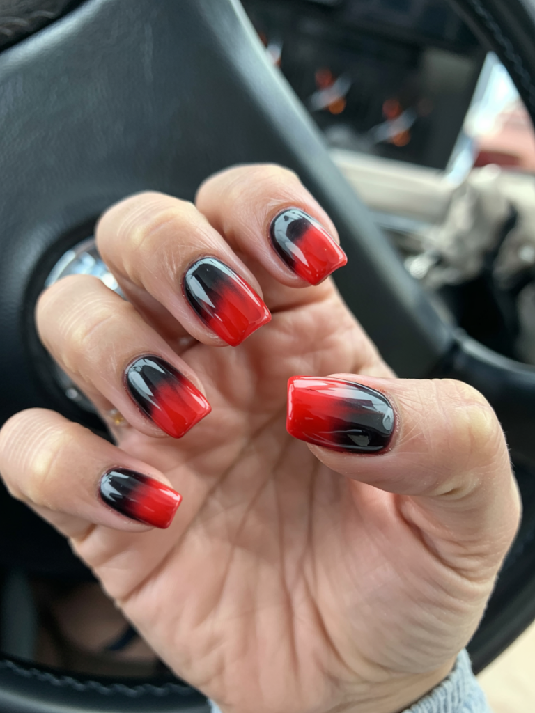 Edgy meets glamorous with this fierce red-to-black ombré. It is thick, sexy and slightly edgy just like your most preferred leather jacket, but in nail form.