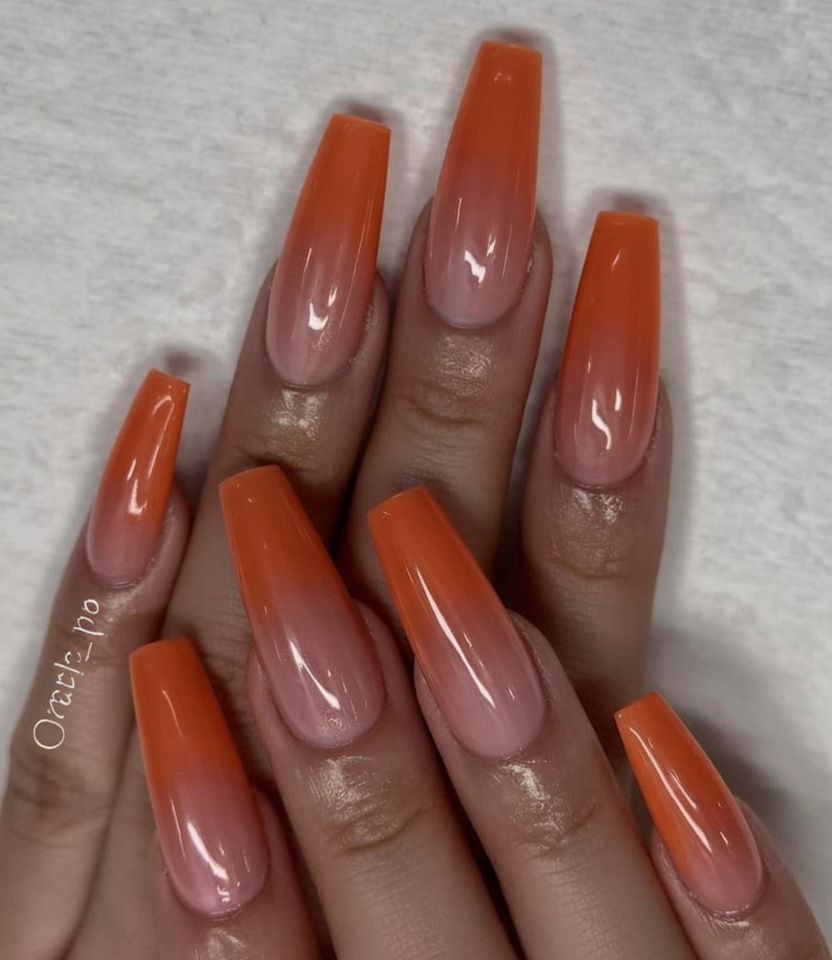 Ready to turn heads this pumpkin spice season? This ombre fom peachy nude to bright orange adds a big energy to the concepts of autumn colors with an acidic touch. It’s vibrant, seasonal, and totally Instagram-worthy.