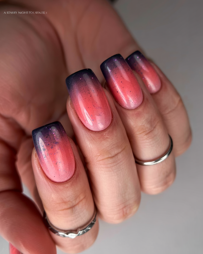 The dark tips give a good fall contrast to ombre dark nails 2025 and the glitter makes it funny. It is ideal for those with creative karma that like drama with their polish.