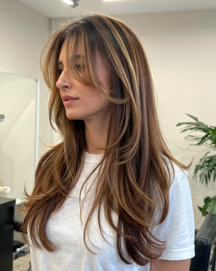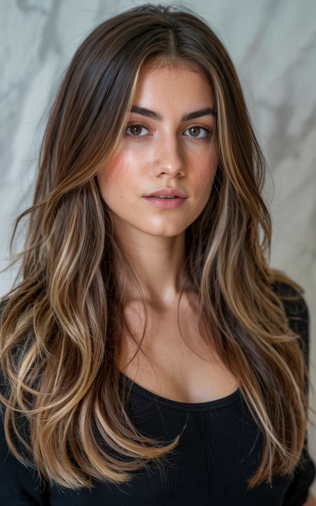 If you have fine or limp hair, this is a great choice. The strategic layering boosts movement without taking away density, and the subtle balayage is totally in line with trends 2025 — natural, dimensional, and easy to maintain.