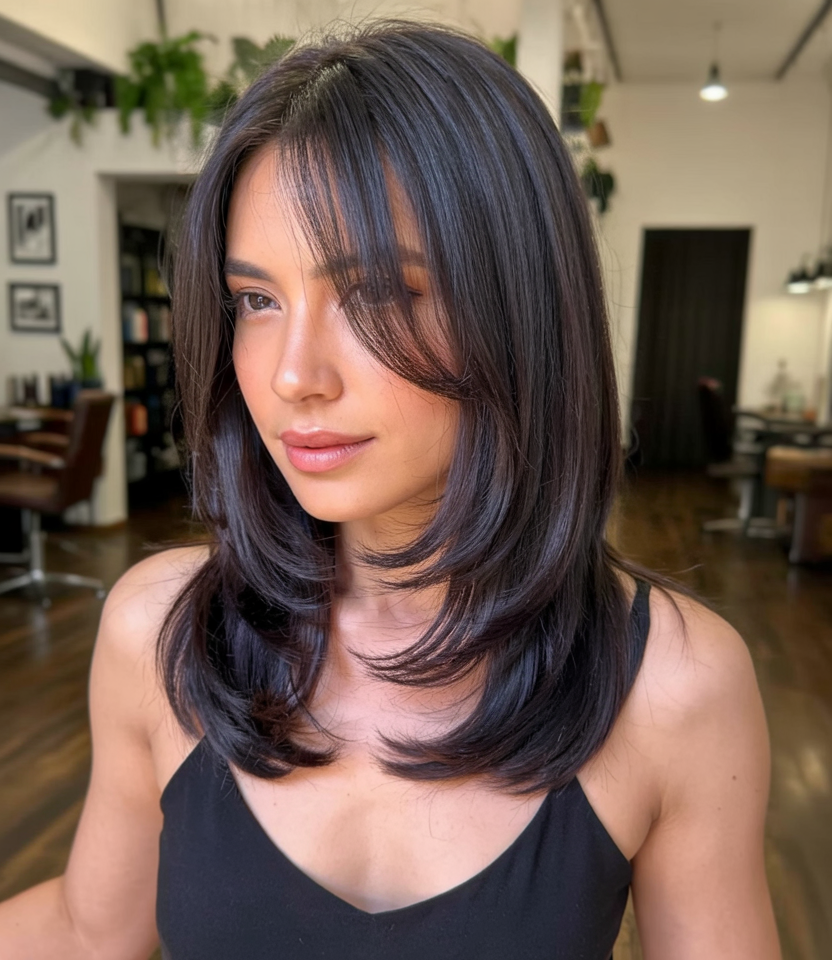 This one’s all about long, glossy layers that whisper confidence. It’s the kind of haircut that looks just as good at a board meeting as it does at brunch. The precise layering gives it an elevated, high-end feel, while still remaining incredibly wearable.