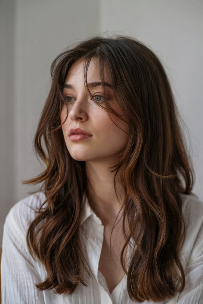 There’s something magnetic about cascading waves that still feel easy and undone. This long hair look leans into natural volume with just the right touch of polish. It’s the kind of style that turns heads on the street — but still feels totally wearable every day.