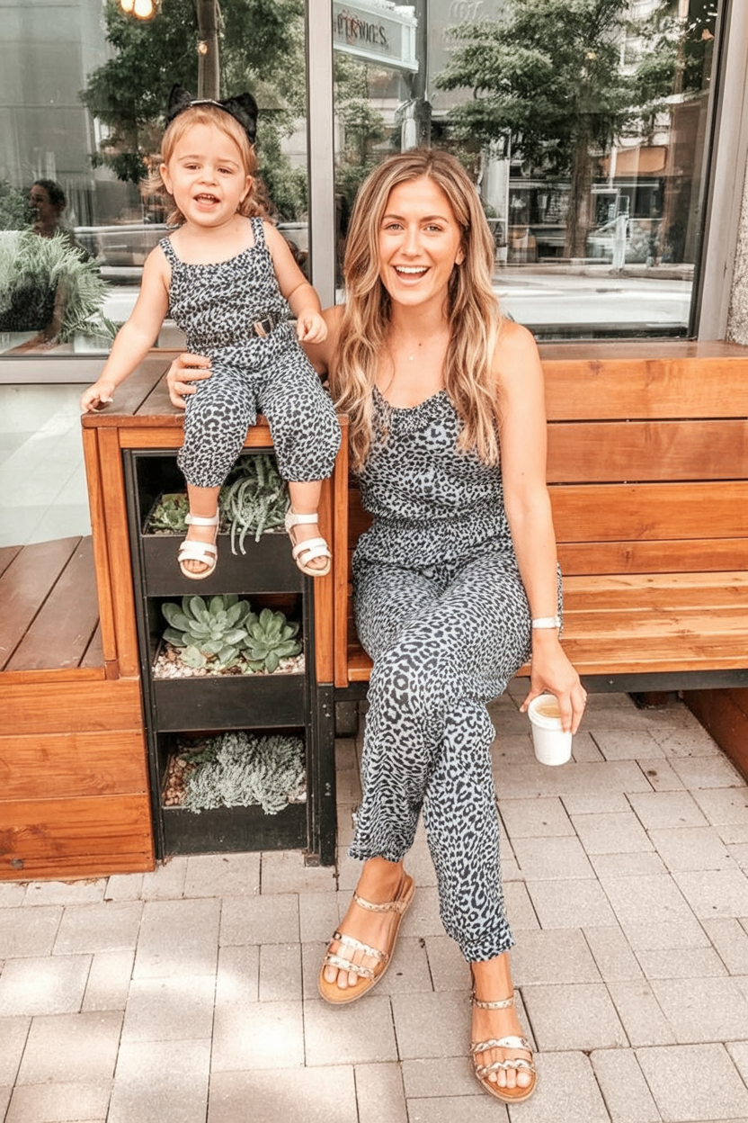 This mom-and-baby look feels playful, confident, and modern. Matching outfits instantly create visual harmony, while the casual setting keeps everything feeling relaxed and fun. It’s a great reminder that family style doesn’t have to be complicated to look great.