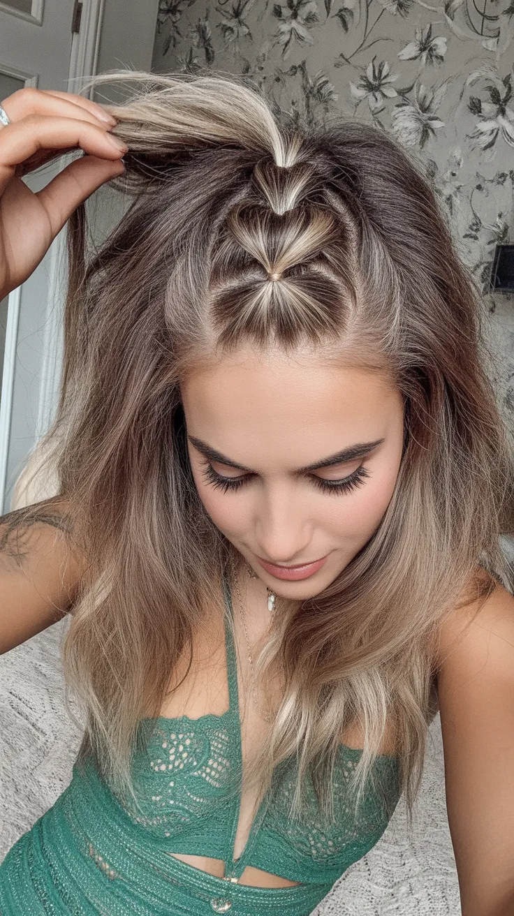 This sweet heart-shaped detail woven into a half-up style feels playful yet surprisingly elegant. It’s creative without being over the top, and it brings out that fun side we sometimes forget to show. Who says moms can’t experiment a little?